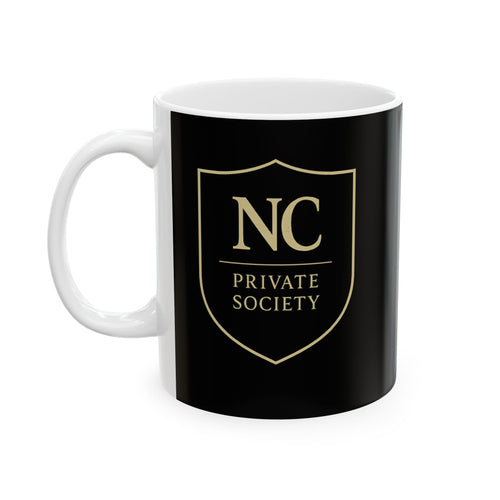 "Private Society" Gold Shield Black Ceramic Mug | 11oz or 15oz | Black Gold Standard.